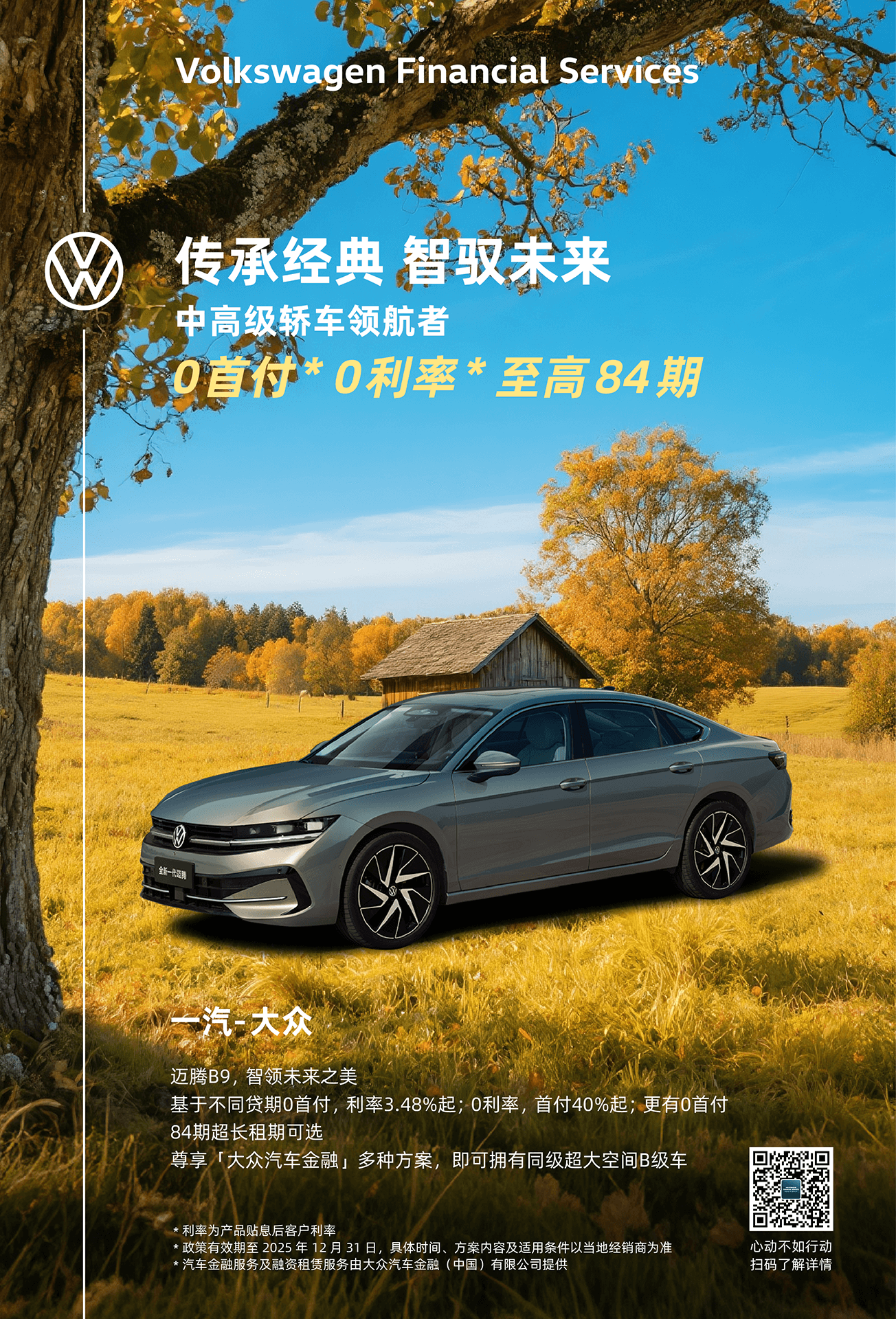 尊享「大众汽车金融速享智选方案」,36期 0利率